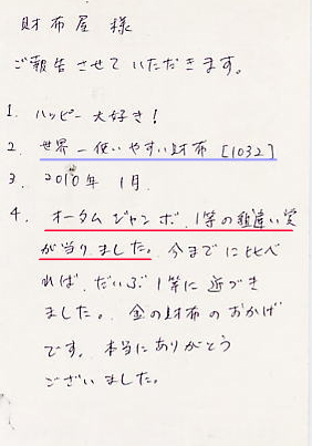 年末ジャンボで初めて3000円に当選しました!