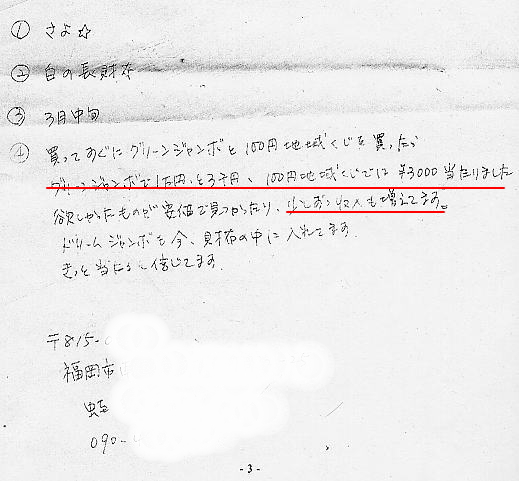 年末ジャンボで初めて3000円に当選しました!