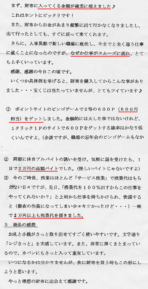 [34]「お金にこれから一生困らない」、「お金がどんどん増える」、「幸せなセレブになれる」そんな気持ちになりました。