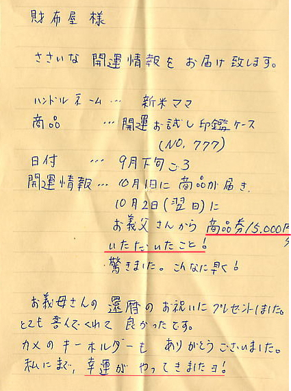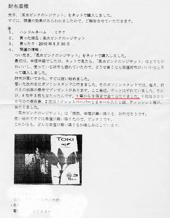 七福財布を購入してから懸賞に2回当選しました。