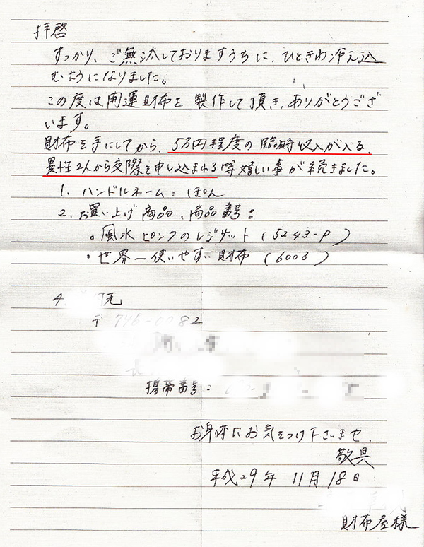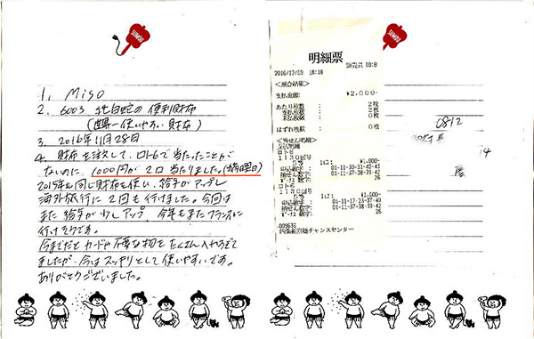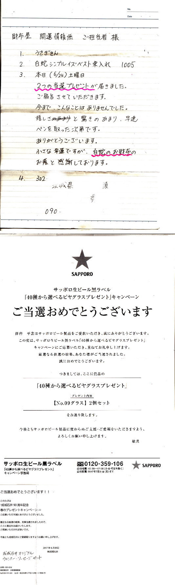[182]七福財布を購入してから懸賞に2回当選しました。