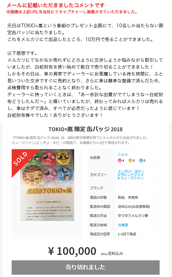 当たった商品をメルカリにて出品したところ10万円で売れました!