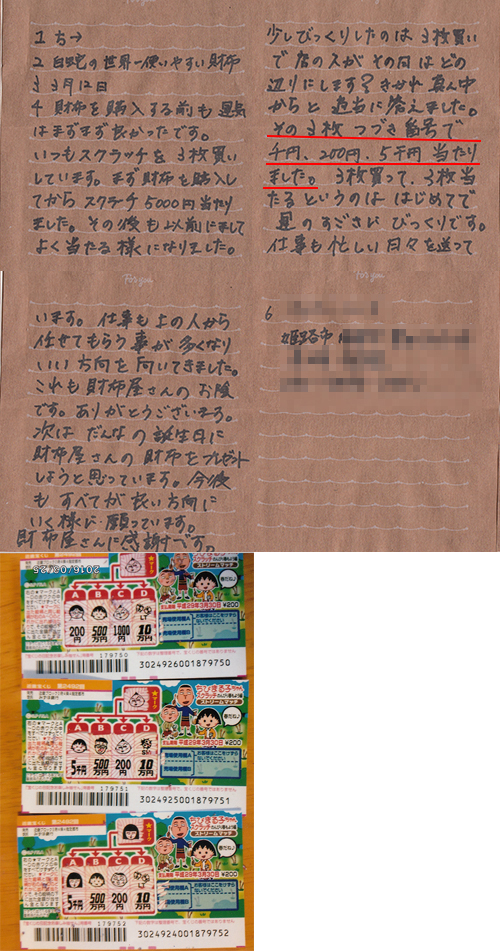 3枚購入したスクラッチくじが3枚とも当選!