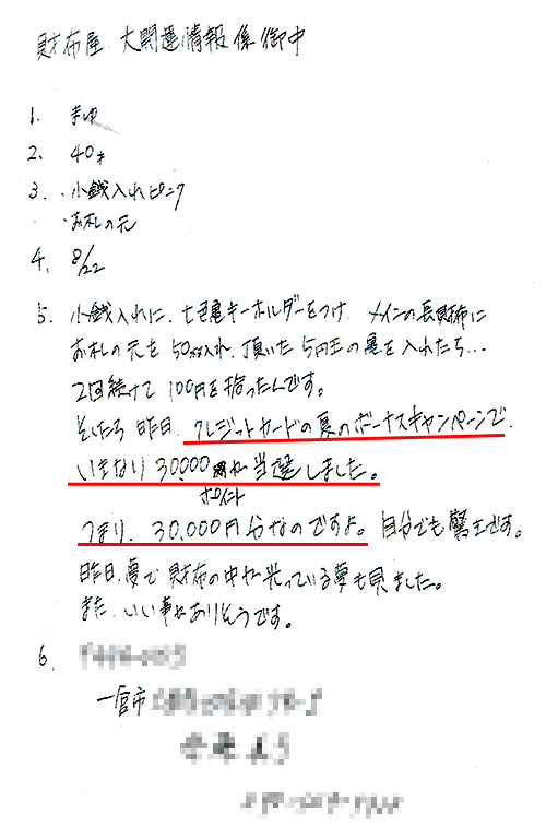 手放した開運財布を再び購入したらくじで1等(5,000円分)に当選!