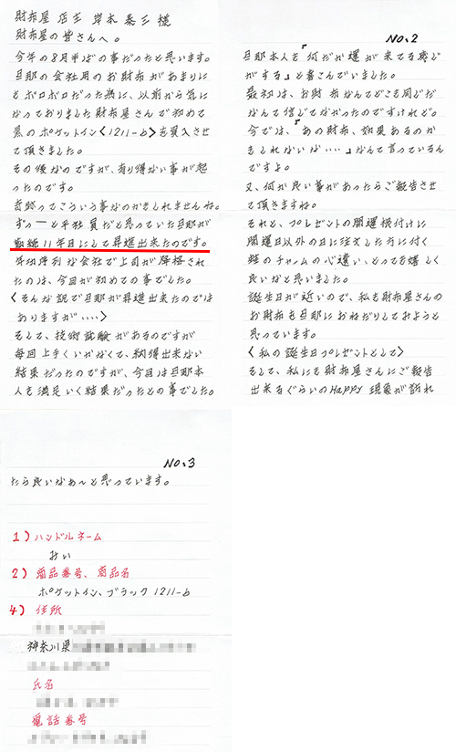 商品到着の翌日にお義父さまから商品券1万5千円分をもらった。