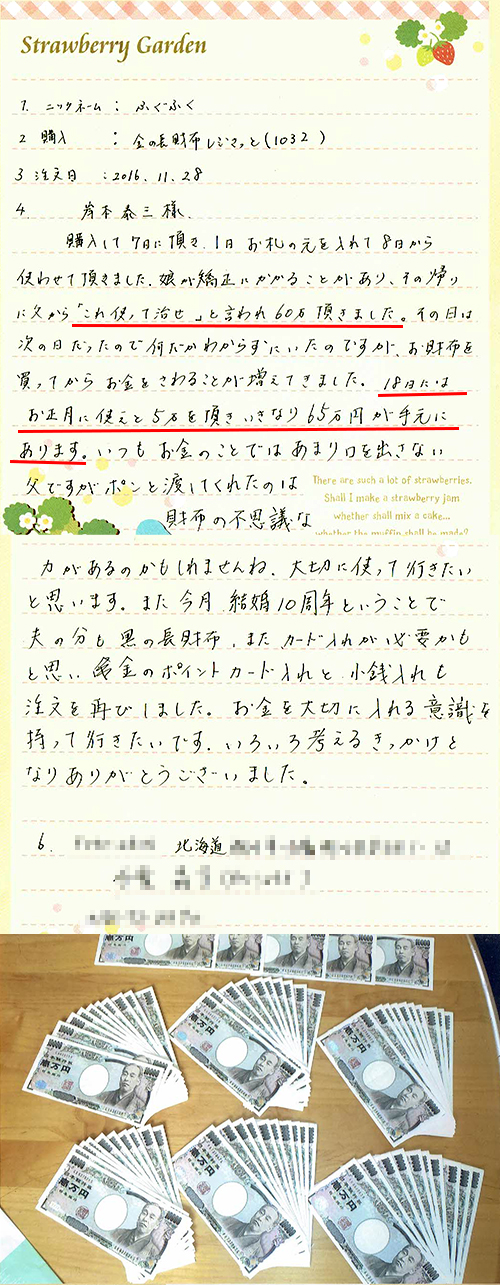 財布を使い始めてすぐにロト7の5等に当選しました!