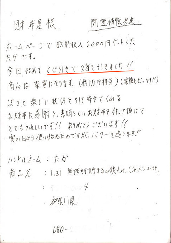 七福財布を購入してから懸賞に2回当選しました。