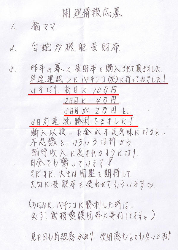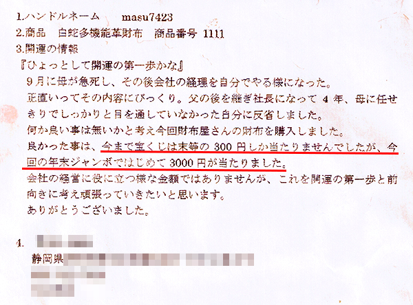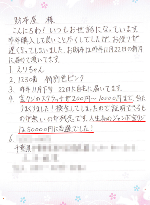 手放した開運財布を再び購入したらくじで1等(5,000円分)に当選!