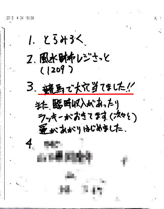 いろいろなくじに当選したり、競馬で勝ったりいいことが続いています。